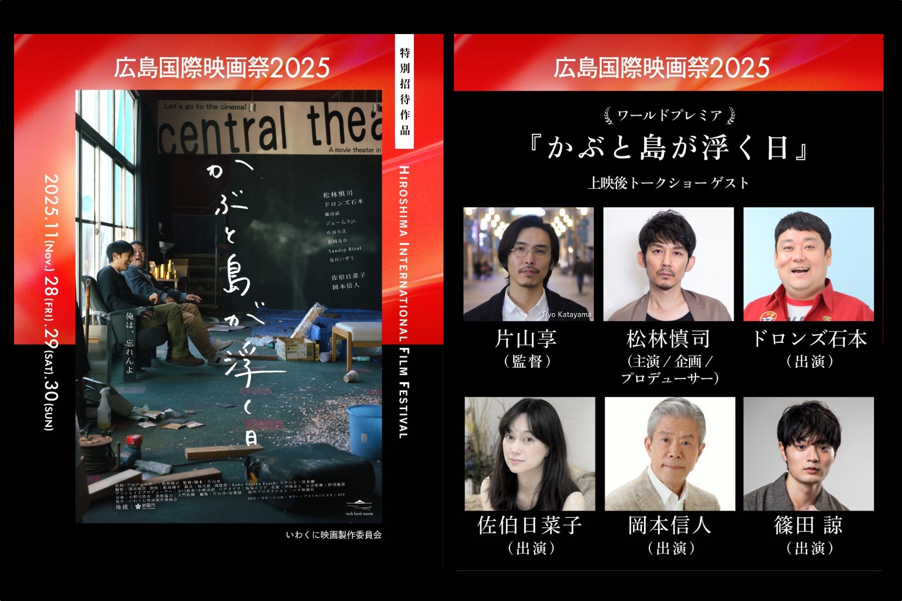 【佐伯日菜子】明日11月28日(金)、映画『かぶと島が浮く日』が広島国際映画祭でワールドプレミア上映!佐伯日菜子もアフタートークに登壇致します!